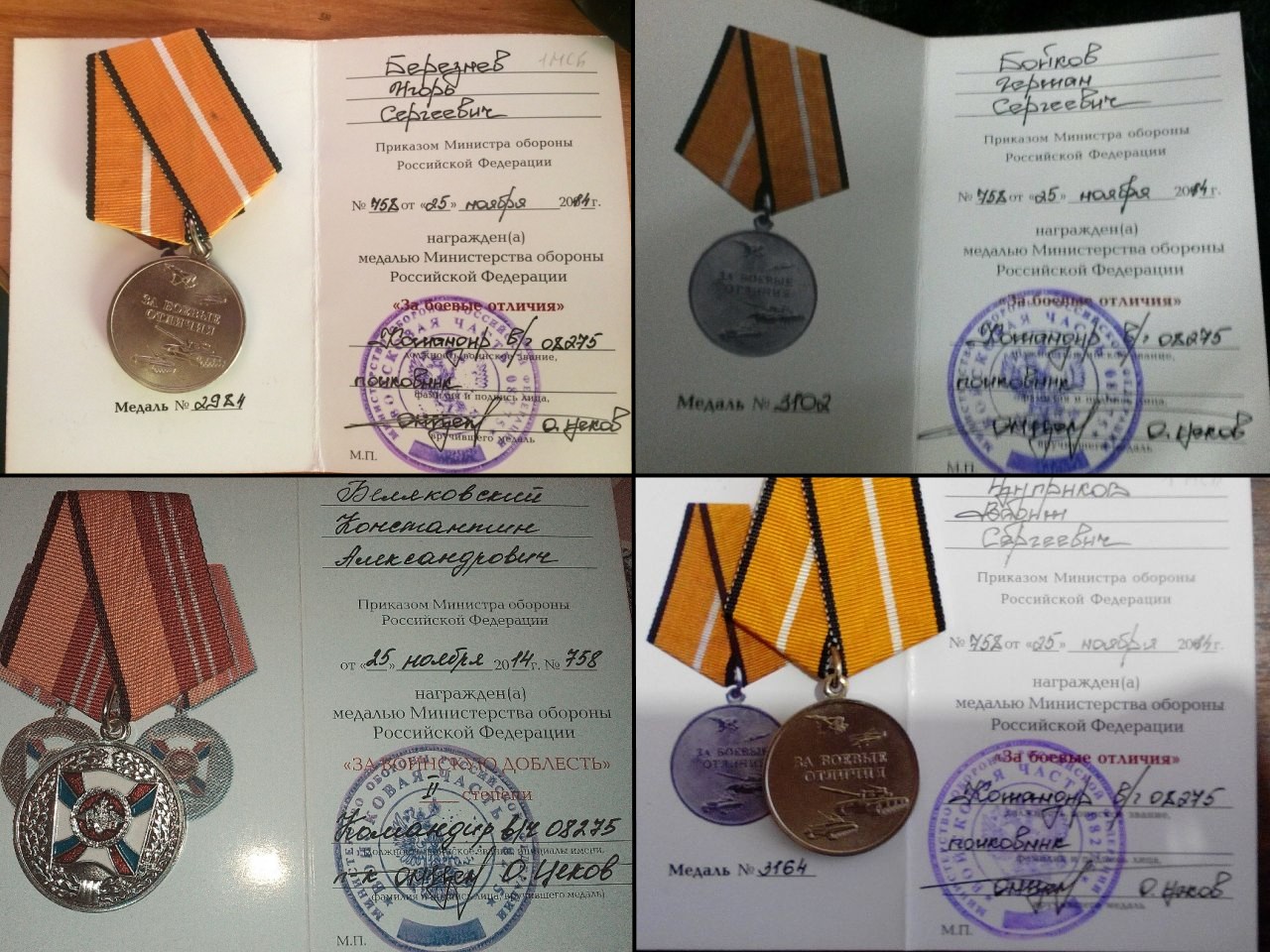 Медаль "За боевые отличия" Игоря Березнева (награжден приказом Министерства обороны РФ №758 от 25 ноября 2014 года):