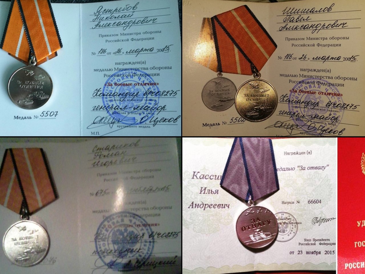 Медаль "За отвагу" Ильи Кассина (награжден указом Президента РФ от 23 ноября 2015 года). Примечательно, что такую медаль получил военнослужащий, который входит в боевой расчет (архивы страниц 1, 2, 3) комплекса дистанционного наблюдения и ретрансляции"Гранат-4".