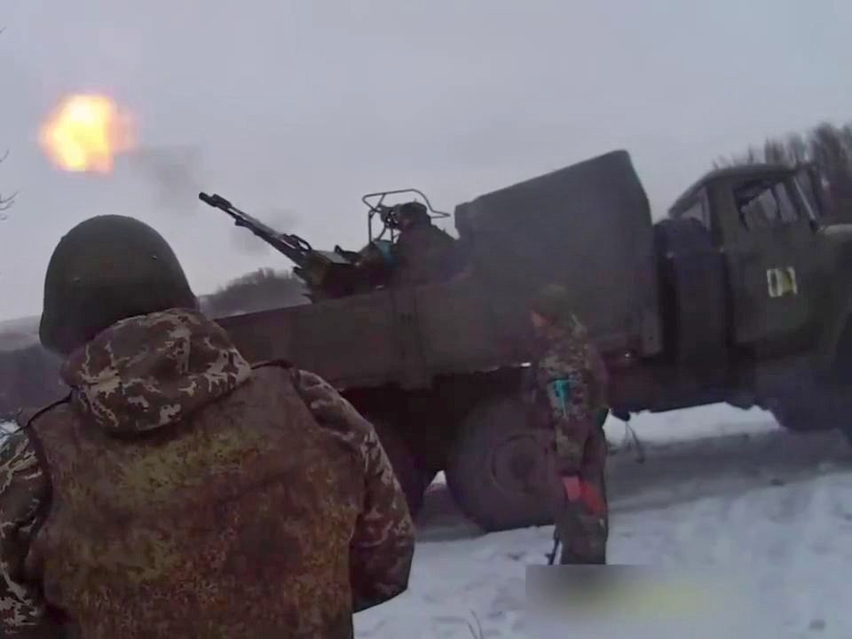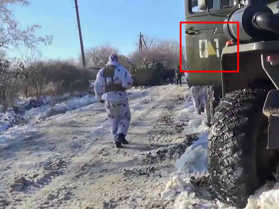 В первые секунды видео "Бои под Дебальцево. Начало наступления", выложенного боевиками, на вводной заставке указывается, что съемки относятся к боевым действиям под Дебальцево 23 января 2015 года. В кадре с 00:17 из кузова армейского "Урала" ведет огонь установка ЗУ-23. На правой двери грузовика под белым номером 01 просматривается небольшой знак желтого цвета: