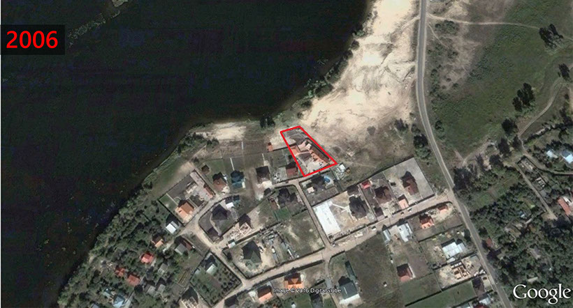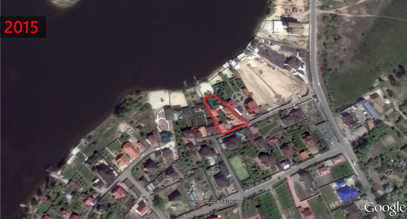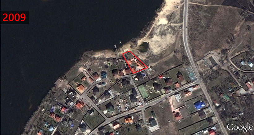 Офіційно даний маєток був оцінений у 2009р. (коли будівельні роботи були вже завершені і в цьому можна пересвідчитися, глянувши знімки супутника нижче) у скромні майже 2млн.грн. За нашою ж інформацією на сьогоднішній день, у часи фінансової кризи, дана нерухомість судді Шевченка в с.Осещина коштує мінімум 400тис.$ або майже 10млн.грн. (34 річних заробітних плат Олександра Васильовича станом на 2015р.)
