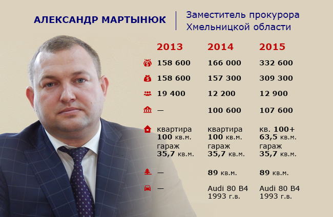 Для некоторых 2015-й стал необычайно урожайным. К примеру, заместитель руководителя Хмельницкой местной прокуратуры Александр Терлецкий, заместитель руководителя Шепетовской местной прокуратуры Вадим Мельник и заместитель руководителя Староконстантиновской местной прокуратуры Игорь Барахтенко приобрели автомобили. А заместитель руководителя Староконстантиновской местной прокуратуры Ярослав Лисовый – новую жилплощадь.