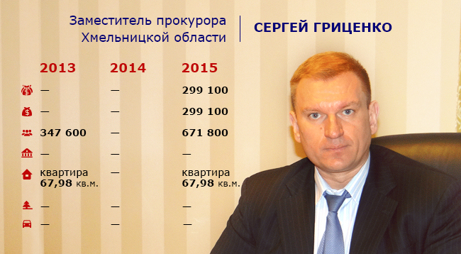 На одну зарплату живет еще один заместитель облпрокурора Сергей Гриценко, хотя размер его взносов в уставные фонды ряда предприятий превышает 1,4 миллиона гривен.