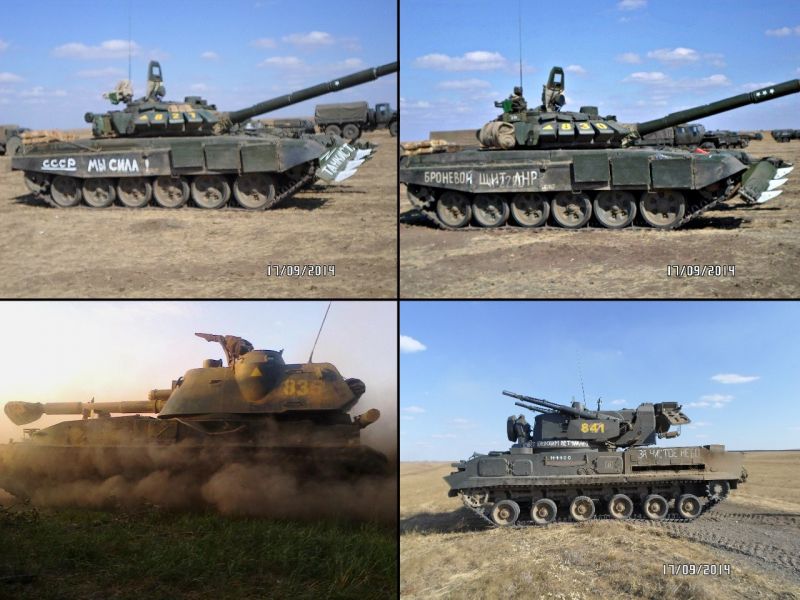 - неуставные надписи на боевой технике в виде пропагандистских лозунгов времен Великой Отечественной войны, выражений со словами" Донбасс", "ЛНР", "ДНР", батальон "Айдар" и так далее (множество подобных снимков обнаружил блогер-расследователь IrakliKomaxidze на страницах "ВКонтакте" Николая Дугаева и Михаила Боюрова);