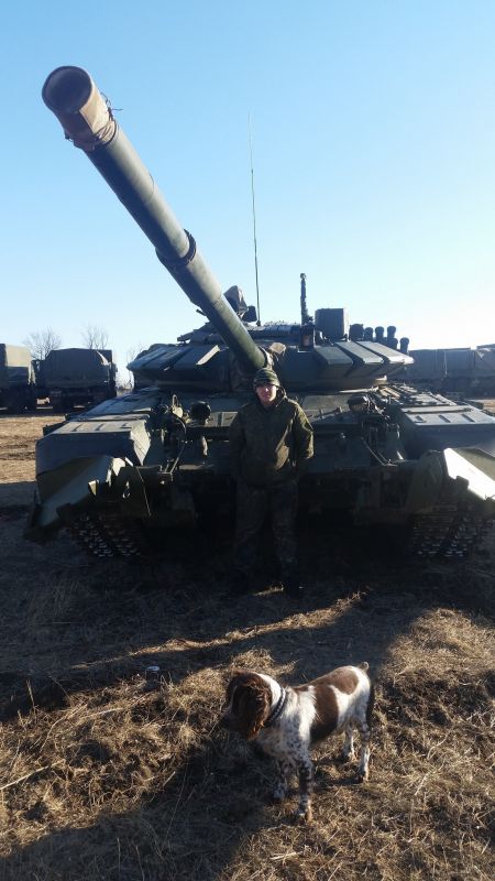 Танк T-72B3 с неизвестным номером (можно рассмотреть, несмотря на попытки фотографа это скрыть, что номер, вероятно, 824) и надписью «За Родину !!!" на правой стороне.