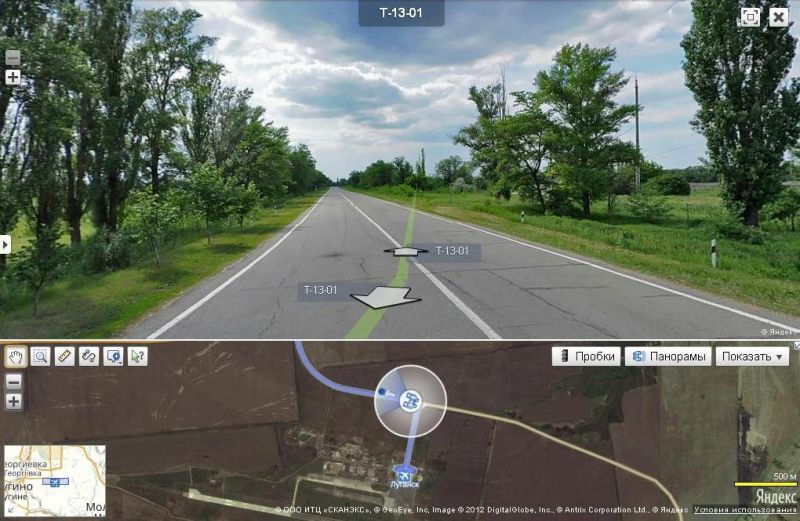 Вид "Яндекс.Панорамы" на дорогу, на которой был сфотографирован танк Т-72B3.
