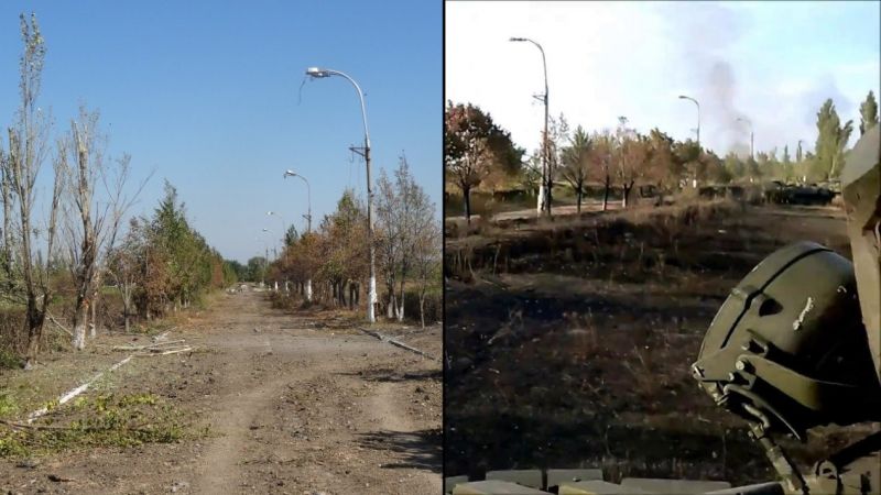 Сравнение сцен, на которых изображена дорога, ведущая к аэропорту Луганска.