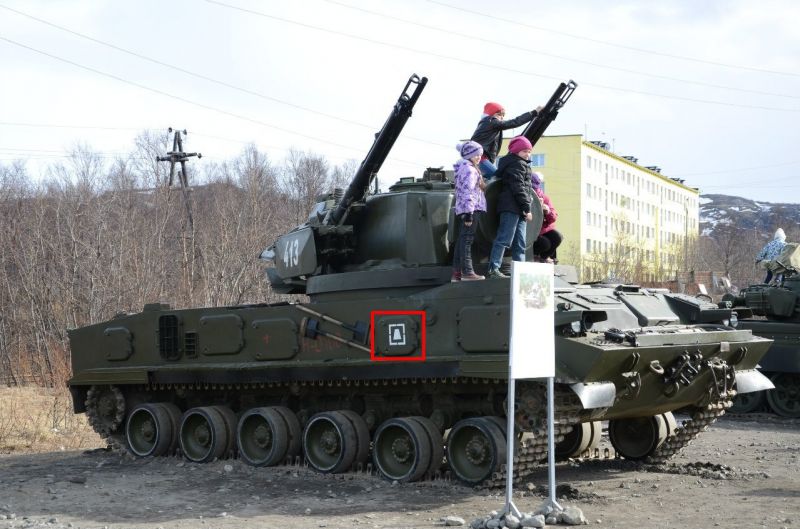 Этот же тактический знак на одной из "Тунгусок", выставленных напоказ в поселке Печенга (координаты места - 69°32’50.7"N 31°12’41.6"E) в 2013-м году по случаю торжеств 9 Мая: