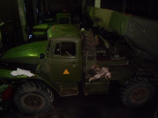 Фотографии РСЗО БМ-21 "Град" с опознавательными желтыми равносторонними треугольниками 200-й ОМСБр на дверях.