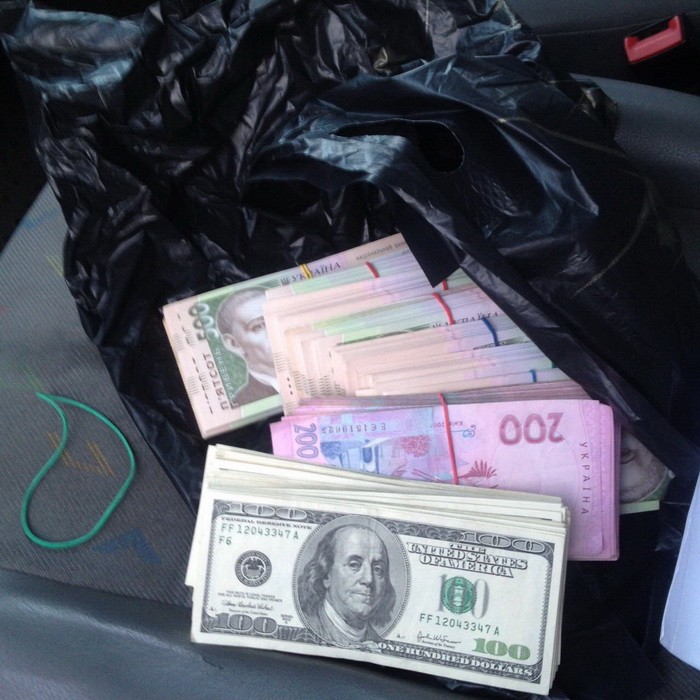 Правоохоронці затримали хабарника в Одесі поблизу одного з торгово-розважальних центрів під час одержання 13 тисяч 400 доларів США та 327 тисяч 300 гривень.