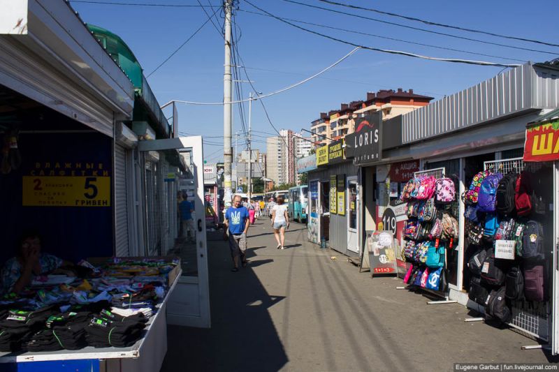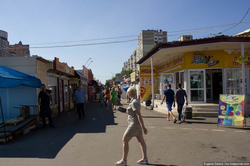 11. Если бы не многоэтажность домов, вы вряд ли бы узнали, что за ларьками существует город.