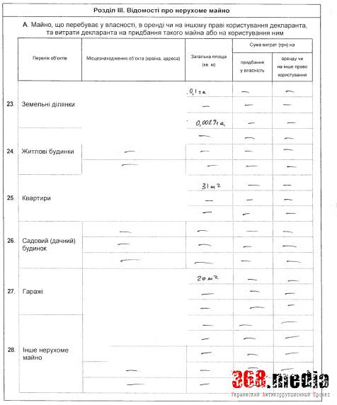В прошлом году прокурор смог заработать 353 тыс. гривен, из которых 92 тыс. гривен получил в результате отчуждения имущества. Понять, что конкретно продал Дмитрий Сус, невозможно, т.к. его декларация о доходах за 2014 год отсутствует. Вместо нее в рамках закона об очищении власти он показал документ 2013 года. Тогда его доходы составляли 114 тыс. гривен, из которых 14,5 тыс. гривен получил от реализации недвижимого имущества