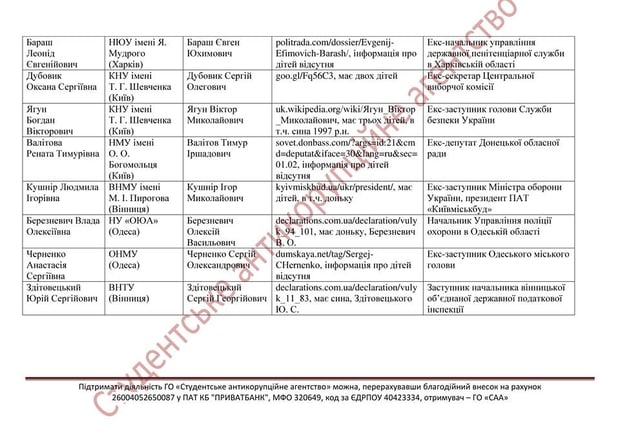"Ми у Студентському антикорупційному агентстві провели цікавий аналіз. Сказати, що мені гидко - це нічого не сказати. Інформація лише вибіркова. Депутатів районних рад, керівників приватних підприємств та інше я навіть не включав до переліку. Усі збіги, звичайно, випадкові. Немає впевненості в тому, що 100 відсотків представлених людей є пов’язаними, але тенденція зрозуміла", - написав він.