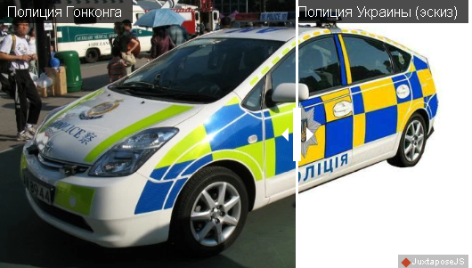 Правда, в чому полягала робота дизайнерів МВС при створенні цього «ескізу», незрозуміло. «Главкому» вдалося знайти оригінальне фото, яке надихало міністерських творців. «Ескіз» виявився точною копією автомобіля поліції Гонконгу. Все, що зробили дизайнери Авакова, - поміняли слово Police на «Поліція», трохи змінили кольори розмальовки та додали українську символіку.
