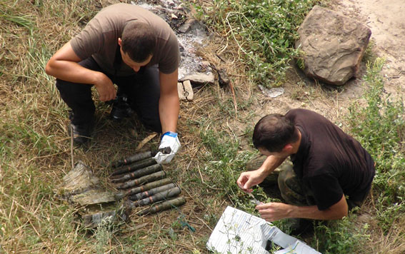 В Донецкой области в городе Славянск рядом с местом отдыха жителей под опорой моста местный рыбак нашел восемь фугасных снарядов, к которым был подключен электродетонатор.