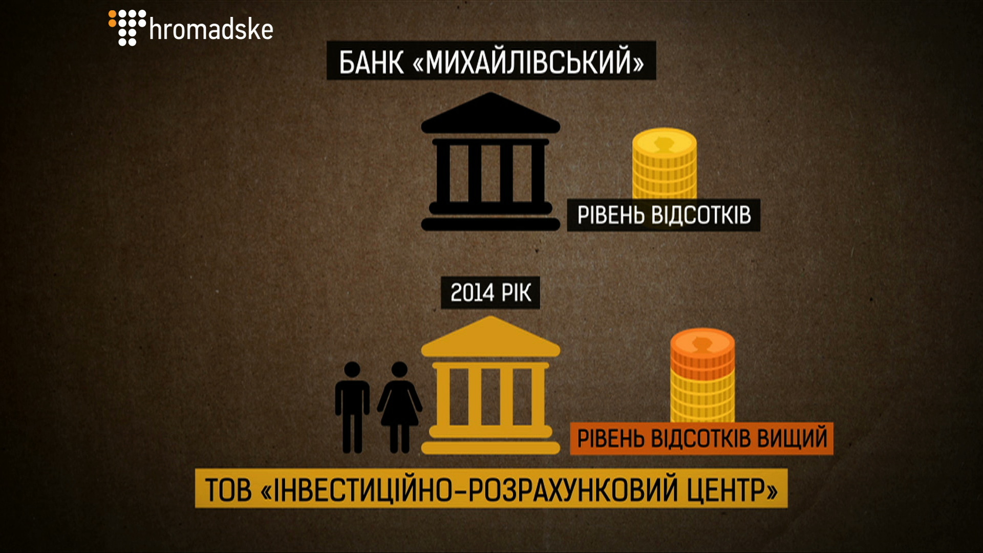 Та історія з Михайлівським кардинально відрізняється від історії інших збанкрутілих банків. Клієнтів цієї установи надурили двічі. Перший раз – коли заявляли про надійність їхніх вкладів у банку. Другий – коли рекомендували вкладати гроші на ще вигідніших умовах – у пов’язній інвестиційній компанії.