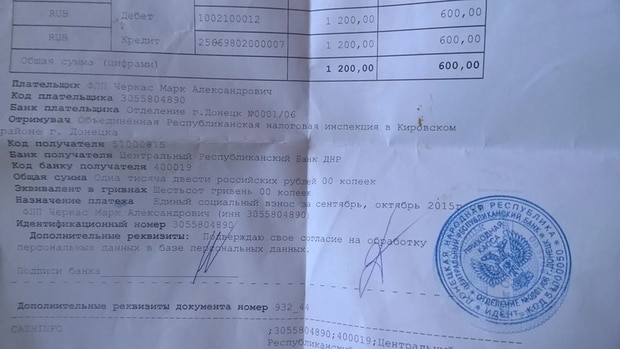 А на той стороне у боевиков "таможня" стоит. Все машины платили официальный налог в так называемый "Республиканский банк ДНР". Если бы в нашей стране "ЛНР/ДНР" были признаны террористическими организациями – только за этот чек любому контрабандисту можно было бы смело впаять статью "финансирование терроризма".
