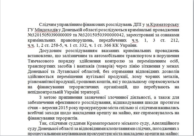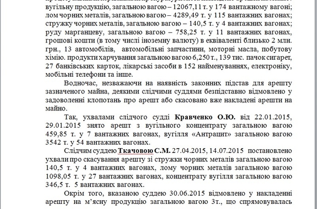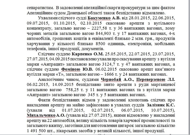 К тому же, не стоит забывать про суды. Можно сколько угодно ловить, но местные суды всех отпускают. Яркий пример: краматорские налоговики добились наложения ареста на задержанные с января по сентябрь 2015 года грузы. В частности, речь идет о 12067,11 т угля в 174 грузовых вагонах; 4289,49 т. лома черных металлов в 115 вагонах; 140,5 т стружки черных металлов в 4 вагонах; 758,25 т марганцевой руды - 11 вагонов, денежные средства в эквиваленте около 2 млн грн, 13 автомобилей, автозапчасти, моторные масла, бытовая химия, около 6,250 т продуктов питания, 139 тысяч пачек сигарет, 152 наименования лекарственных средств, электроника, мобильные телефоны и многое другое. Но абсолютно все эти грузы безосновательно были отпущены местными судьями.