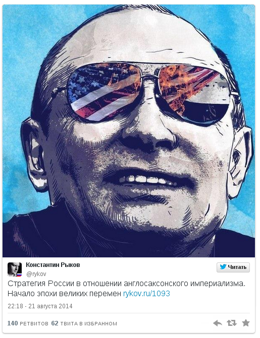 Но Константин не унывает. Он знает, что патриотизм-путинстайл отлично оплачивается в нашей стране. Насколько я понимаю, именно рыковская команда ведёт все "крымские" твиттеры: прокурора-няши Поклонской, премьера Аксёнова и тд.