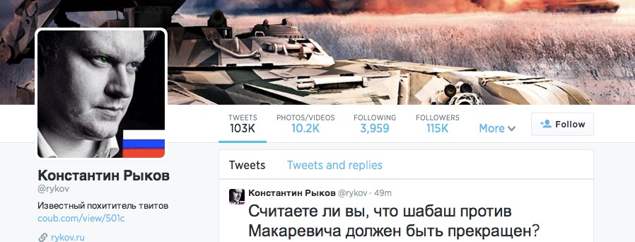 Если вы не очень хорошо представляете Константина, то просто зайдите к нему твиттер.