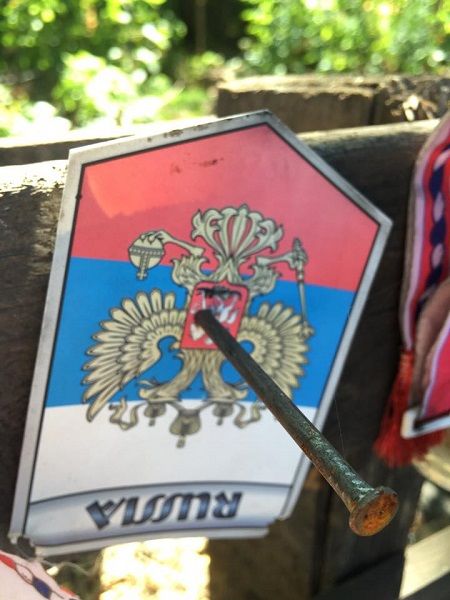 На одном из пропускных пунктов в Донецкой области бойцы ВСУ организовали «галерею» артефактов «любителей «русского мира»