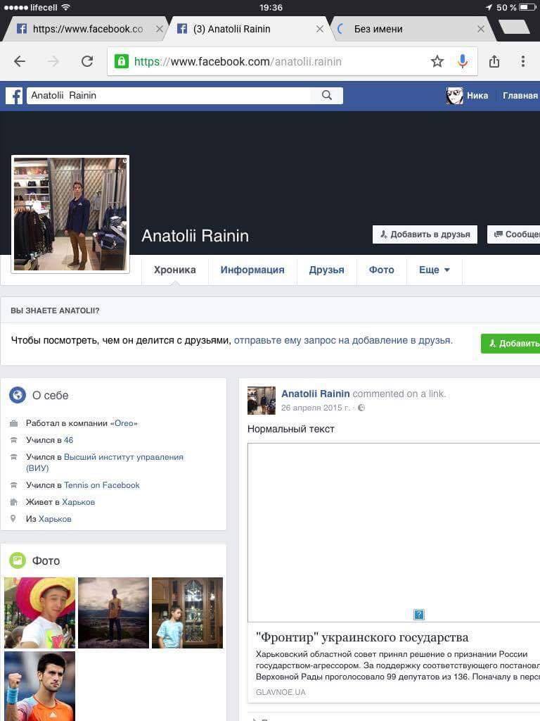 Мы решили еще раз проверить нашу информацию и, в очередной раз, удостоверились, что она правдива. Во-первых, на странице Анатолия в ФБ по прежнему стоит ссылка на московский ВУЗ. При этом, как выяснила "Страна", Анатолий был зачислен в Харьковский национальный юридический университет имени Ярослава Мудрого. Однако об этом, почему-то, он не указал на своей странице в соцсети. Впрочем, ничего не мешает ему учиться в двух ВУЗах одновременно - в украинском и зарубежном.