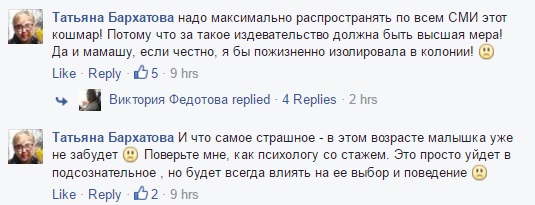 За словами сусідів, чоловік був п’яний. При цьому зґвалтування було групове, оскільки один поліз до матері, а другий до дитини. Місцеві жителі розповіли журналістам, що мати постійно знущалася над дочкою, била і душила її, займалася в її присутності сексом з чоловіками.