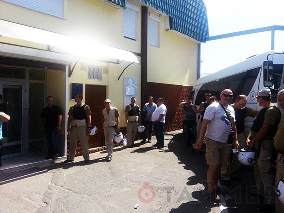 По информации предпринимателей, внутри здания находятся бойцы спецподразделения милиции и люди в чёрных шлемах.