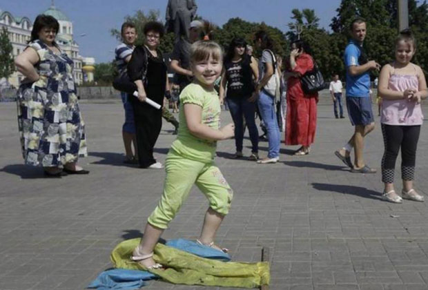 Видимо, такой ретроспективы террористам было мало. В Донецке воспроизвели средневековое средство наказания – позорный столб. Возле уличного столба, под надзором вооруженного представителя «ДНР», поставили женщину со следами побоев. На ее плечи накинули украинский флаг, а в руки дали табличку: «Она убивает наших детей».
