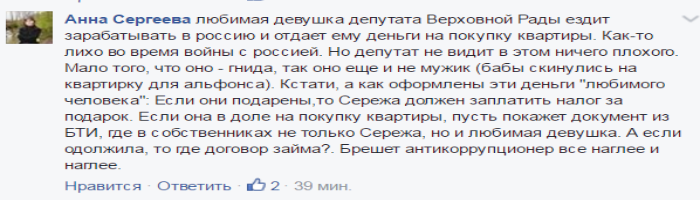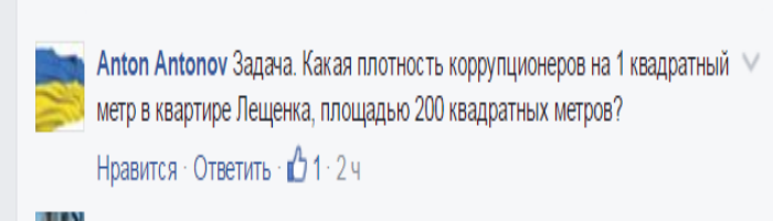 Однако, это только «верх айсберга». В Сети поднялась настоящая буря вокруг новоприобретенной Лещенко шикарной квартиры общей площадью в 192 кв. м. в самом центре Киева. Большинство пользователей соцсети возмущены двойными стандартами нардепа, который умудряется одновременно бороться с коррупцией и тут же брать огромные беспроцентные займы у сторонних людей.