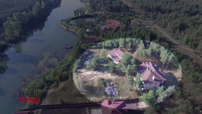 Члены семей киевских прокуроров незаконно застраивают участок защитной дамбы Киевского водохранилища, загородив десятки гектар государственного леса. Берег обводного канала также был затоплен.