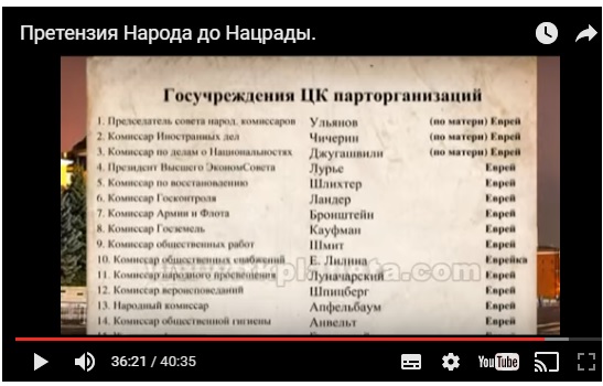 Насчет "темных сил" все тоже по классике: "Лишенные истинных знаний, закабаленные люди для сатанистов стали рабами, людьми второго сорта - гоями!". Все понятно, да? Отдельное видео посвящено разоблачению евреев во власти (включая Ульянова и Джугашвили):