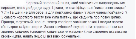 В этом контексте необходимо вспомнить, что задержание Валерия Белого и характер сообщения об этом главы ГПУ Юрия Луценко вызвало серьезный резонанс и скепсис со стороны коллег прокурора. Бывший 1-й зам прокурора Печерского района, позднее люстрированный с должности прокурора Приморского района Одессы Александр Кузьменко в свойственной ему ироничной манере прокомментировал «квалификацию» деяний Белого по требованию скидки емким комментарием и фото.