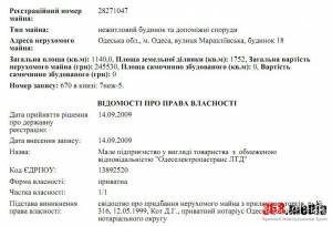 В сентябре того же года судья Приморского райсуда Ольга Шенцева отменила арест, наложенный судом на особняк. Тогда к ней с жалобой на «МП «Одесаэлектропастранс ЛТД» обратился кредитор, которому они задолжали 199 тыс. гривен. Странно, но частное лицо не просило вернуть долг, а лишь отменить арест на имущество, что и было сделано.