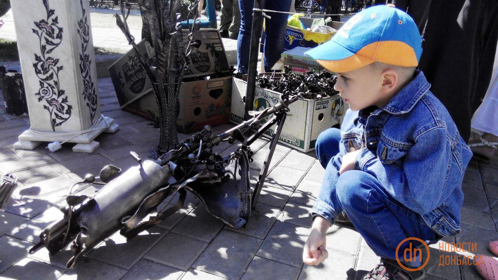 Отмечается, что на прилавках мастера представили множество небольших по размеру фигур, выкованные из боевых гильз. Кроме того, на ярмарке продают и изделия ручной работы, среди которых - шпильки, украшения, ремни, игрушки, картины и прочее. В кованых рамках продают картины с видами Донецка. Также можно купить портрет главы незаконной организации «ДНР» Александра Захарченко. Стоимость портрета - 200 рублей (около 80 гривен).