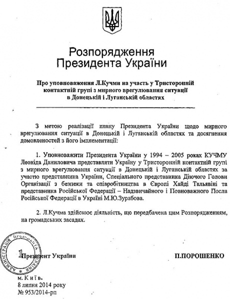 Паплюжать саме Кучму, на чому світ стоїть, що він мовляв не має повноважень від імені українського народу підписувати цей документ. Ви що жартуєте?!! Порошенко призначив Кучму своїм уповноваженим представником (посилання - http://goo.gl/lbt1t1) на переговорах у Мінську.