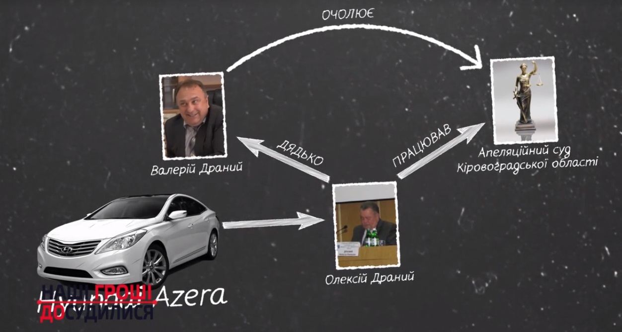 Автомобиль бизнес-класса Hyundai Azera председатель суда оформил на своего родного дядю Алексея Драного, который ранее тоже работал в возглавляемом своим племянником суде.