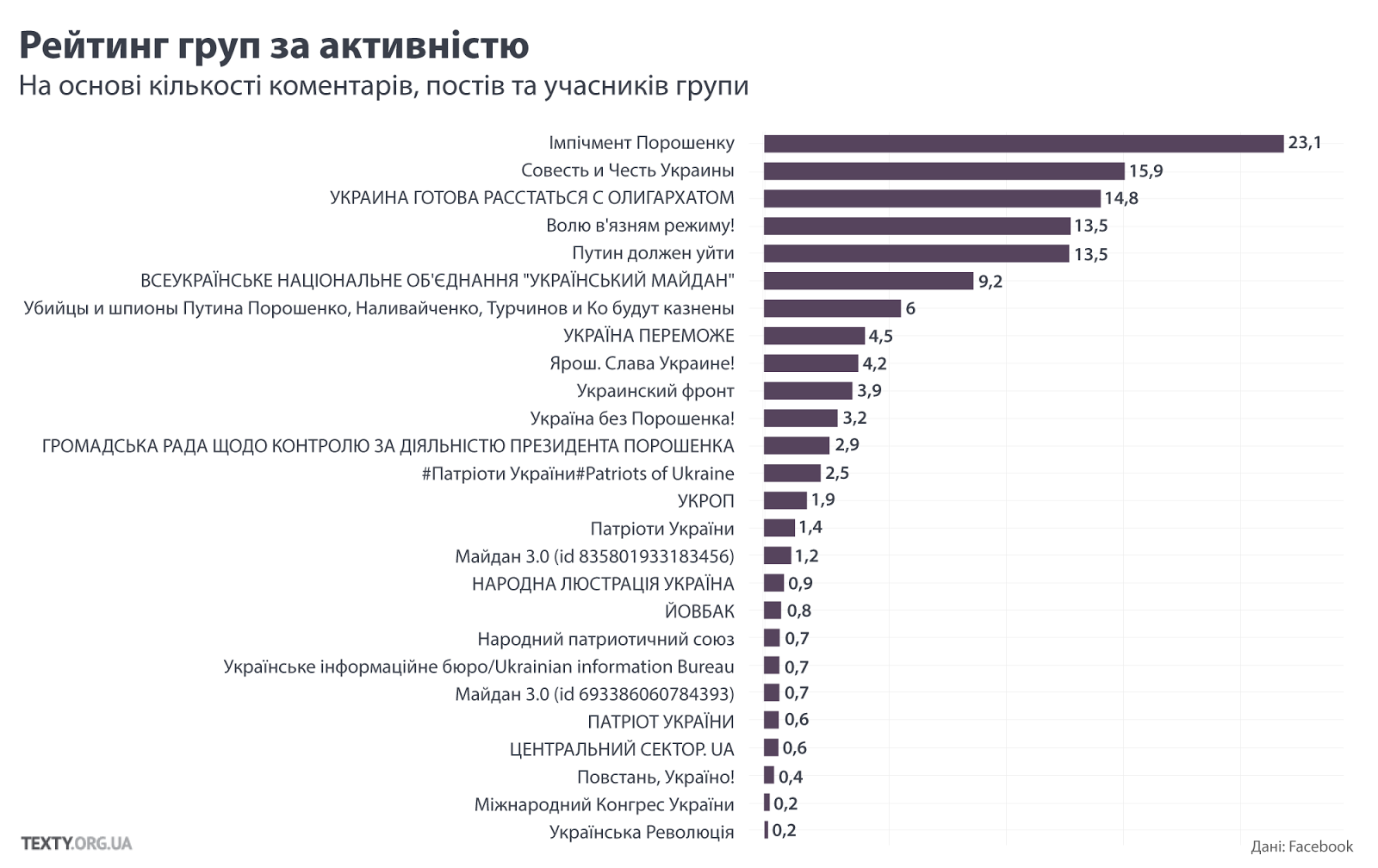 Мы следим за группами “третьего майдана” в Фейсбуке уже полгода. И это довольно скучное занятие, ведь мало что меняется, кроме профилей пользователей, которые наполняют контент. Каждая группа сохраняет свою публикационную активность и имеет постоянных авторов. Они имеют и сеть страниц в ВК, однако несколько более слабую, но сейчас только о ФБ.