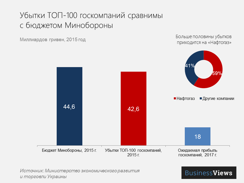 В 2012—2013 годах убыток ТОП-100 компаний составил 28 млрд гривен. Это почти равно бюджету Минобороны в 2016 году.