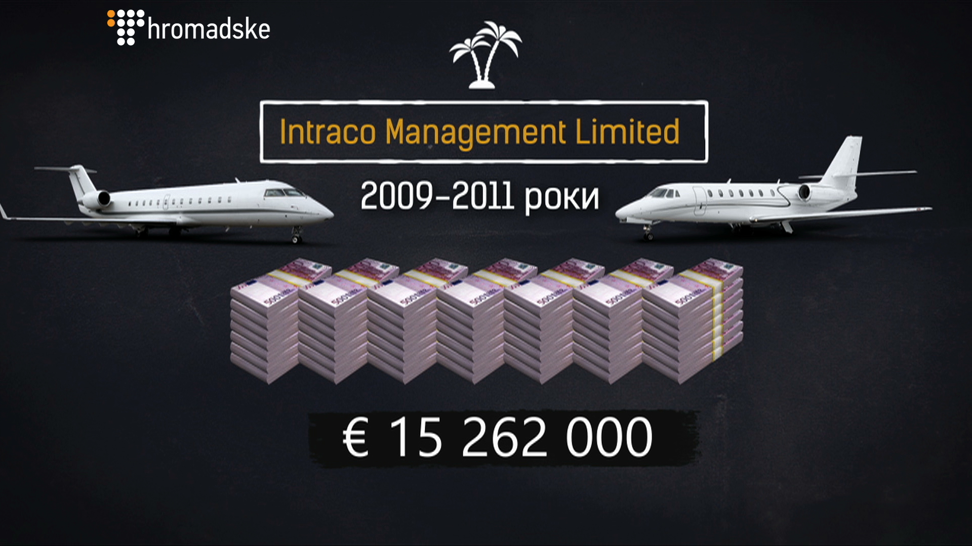 Втім, звісно, немає ніякого криміналу в тому, що чартерні польоти в друзів президента могли замовляти ключові фігури режиму Януковича. Бізнес є бізнес, тим більше, вибір клієнтів на цьому ринку не такий вже й великий. Питання в тому, як ці віп-пасажири оплачували свої перельоти. П’ятнадцять мільйонів двісті шістдесят дві тисячі євро. Таку суму, згідно файлу «Авіабаланс», отримала на банківський рахунок Інтрако Менеджмент за авіа перельоти в 2009 — 2011 роках. І хоча послуги авіаперевезень надають одні українські бізнесмени іншим, в тому числі за внутрішні польоти, гроші в Україну навіть не заходять. Вони йдуть з одного офшорного рахунку на інший.