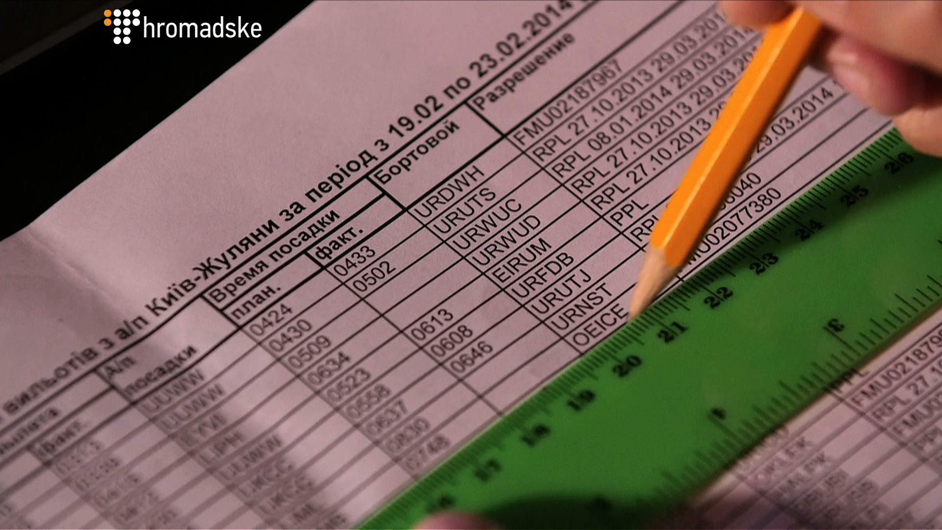 Ми отримали відповідь від державного підприємства «Украерорух». Тут інформація про всі повітряні судна, які вилітали та прилітали в аеропорти «Жуляни» та «Бориспіль» з 18-го по 22-те лютого 2014-го року.