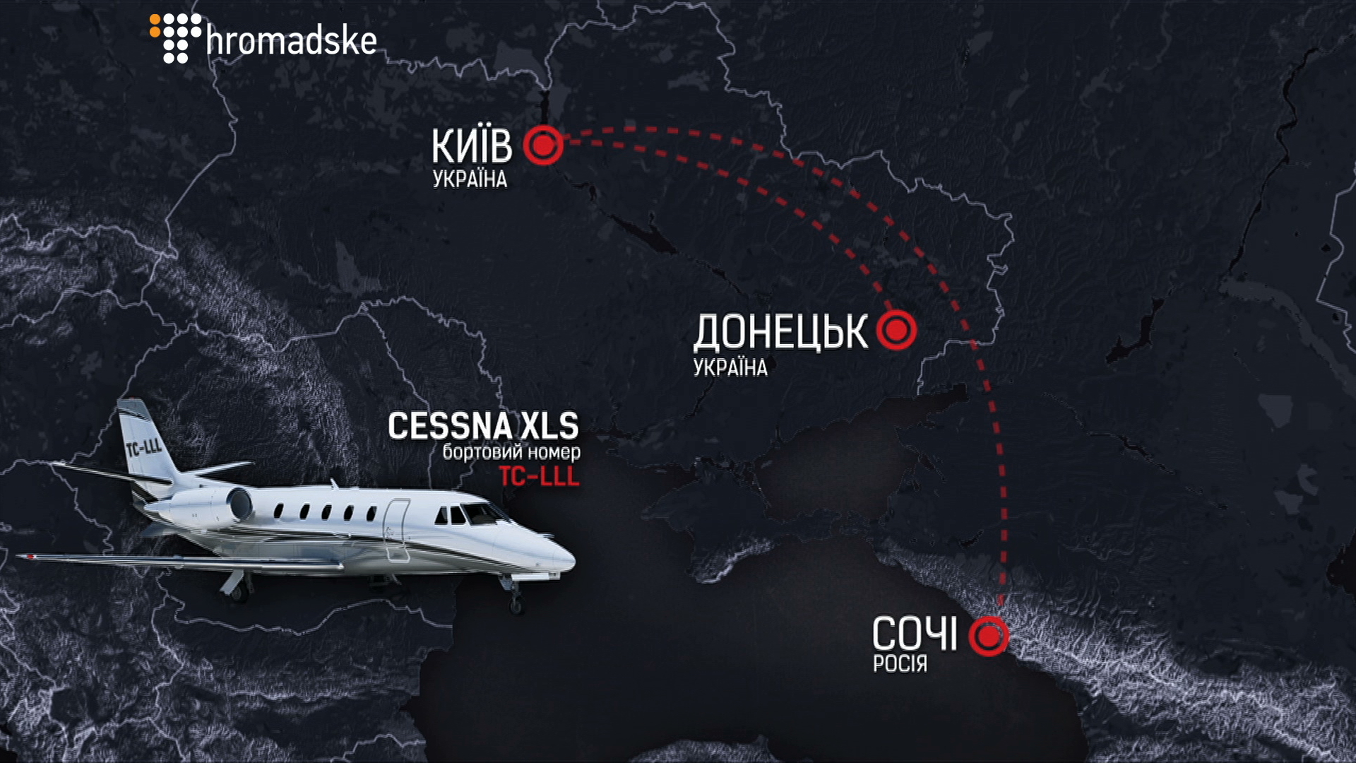 Звіряємо бортові номери літаків, якими користується «Бізнес-Ерлайнз» з отриманими даними «Украероруху». Збіги є. Ось цей літак Cessna XLS з бортовим номером TC-LLL вилетів до з Жулян до Донецька 20-го лютого об 11:30. Потім повернувся, і зробив рейс до Сочі. Наступного дня він знову полетів до Донецька.