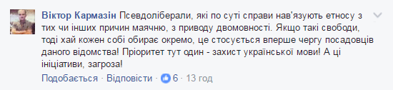 "– Ми взяли курс на двомовну, білінгвальну освіту. – Щоооо?! Як це?! Це такий жарт?! Так-от що відбувається! От для чого в законі про освіту, в цілому непоганому законі з новаторськими підходами, дорослою та інклюзивною освітою, ганебна стаття 7 про мову. Це підготовочка до двомовної освіти?! Спочатку в окремих регіонах, а тоді щоб розповзлося по всій Україні?!" – розповіла Ніцой.