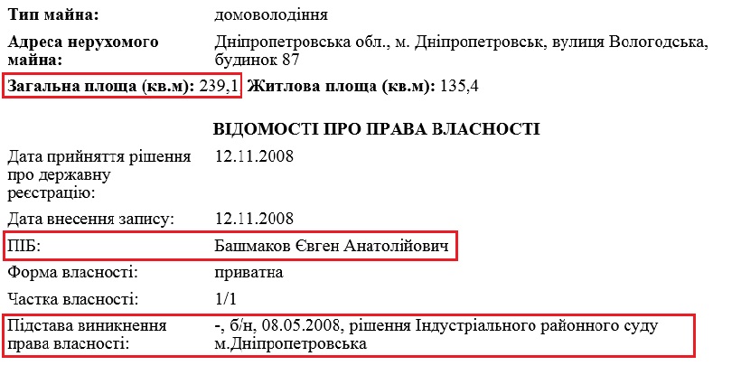 У власності ж матері, Валентини Григорівни, є будинок у Дніпрі по вул. Червонопартизанська та земельна ділянка для садівництва в сщ/раді Ювілейній.