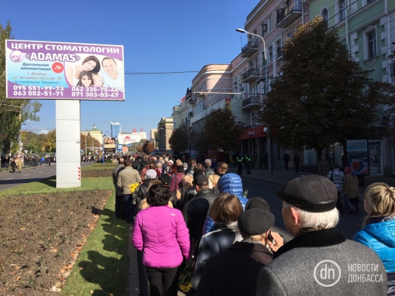 В театрі опери та балету ДНР люди стоять в черзі, аби попрощатись із вбитим терористом Арсеном Павловим, більш відомим як "Моторола".