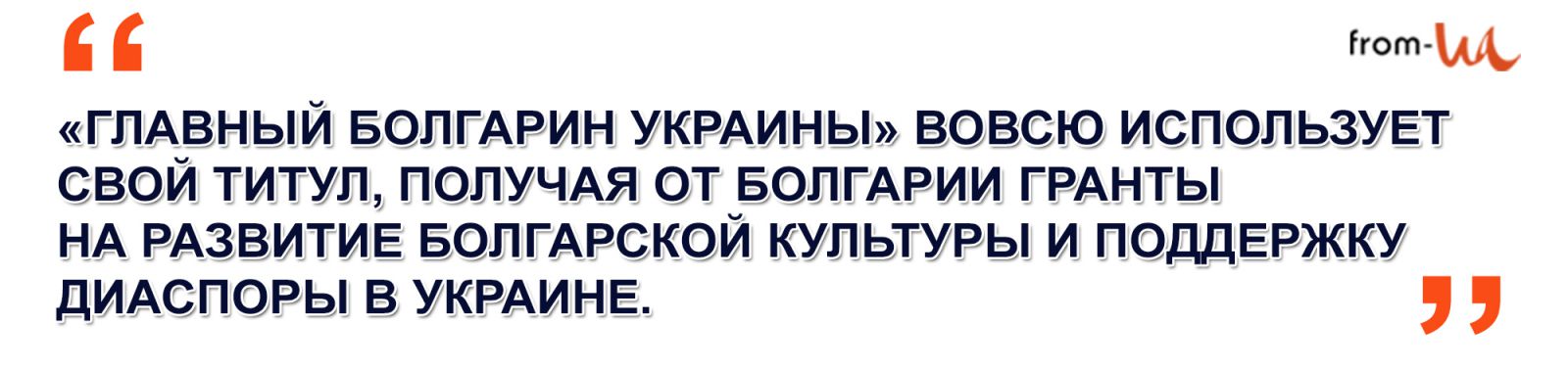 Теперь «главный болгарин Украины» вовсю использует свой титул, получая от Болгарии гранты на развитие болгарской культуры и поддержку диаспоры в Украине. А заодно развернул в Болгарии свой бизнес: Антону Киссе принадлежит недвижимость на Болгарском горнолыжном курорте, а его сын является соучредителей болгарской компании «Перла-тур». И самое пикантное: он сделал своего партнера Ивана Аврамова почетным консулом Болгарии на Донбассе! Что, кстати, автоматически сделало Аврамова обладателем болгарского дипломатического паспорта.