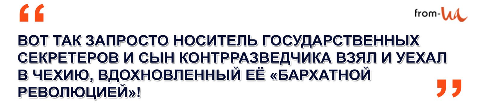 По стопам отца пошел, было и сын – который четыре года проучился в Высшей Школе КГБ в Москве (!) после чего вдруг махнул на всё рукой и сбежал в 1989 году в Чехию. Вот так запросто носитель государственных секретеров и сын контрразведчика взял и уехал в Чехию, вдохновленный её «бархатной революцией»! А потом еще много лет жил за границей, учась в западных вузах и работая в западных фирмах. Тут и школьнику понятно, что Боровик-младший чего-то недоговаривает.