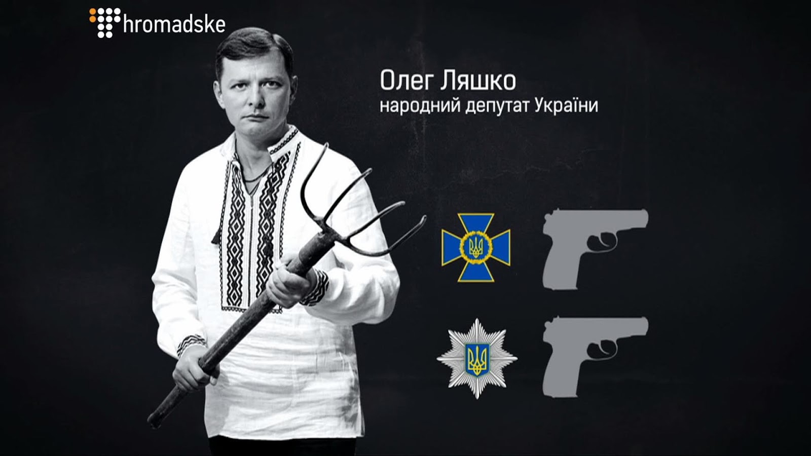 Оружием под куполом также обладает главный радикал Олег Ляшко. И это не только вилы. У народного депутата 2 наградные единицы — от СБУ и МВД.