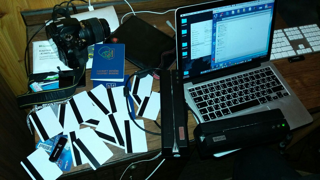 Силовики обнаружили компьютерную технику с большим количеством персональных данных клиентов, специальное оборудование для считывания и записи поддельных карт, фальшивые банковские карты.