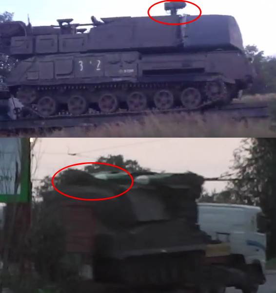 На видео колонны российской техники, снятых в июне, видно, что в колонне несколько «Буков». Однако уследить за тем, отметины на котором совпадают с замеченными в Украине в июле, очень просто, поскольку только на трех «Буках» в колонне нет перил сзади башни.