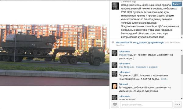 Житель Старого Оскола также подтвердил, что на номерах техники в колонне был код «50». Пользователь rokerrson выложил это фото в Инстаграм 23-го июня [кликабельно]: